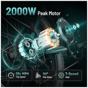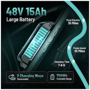 O sistema elétrico utiliza motor com potência de pico de até 2000W, permitindo alcançar velocidades superiores a 45 km/h, com boa resposta em subidas e terrenos inclinados. A bateria de íons de lítio de 48V e 15Ah, com energia de 720Wh, é removível e bloqueável, oferecendo autonomia estimada de até 65 km em modo de assistência ao pedal e cerca de 35 km em uso predominante no acelerador, variando conforme o terreno, o modo de condução e o peso do usuário.