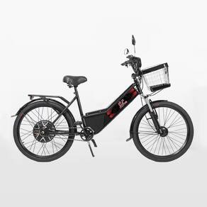 Painel digital em LCD com exibição de: indicador de nível de bateria, velocímetro, hodômetro, painel de tensão de bateria e parada (P)Acelerador na manoplaPedais: Pedal assistido (pedal system)Cesta dianteira com travaBanco ergonômico com molasItens inclusos: