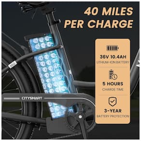 Bateria removível e longo alcance: Equipada com uma bateria removível de 36 V e 10,4 Ah, esta bicicleta elétrica pode percorrer até 64 km com uma única carga completa. O design removível permite fácil carregamento e troca de bateria em qualquer lugar. Perfeita tanto para deslocamentos urbanos quanto para passeios de fim de semana, sem a preocupação de alcance limitado.