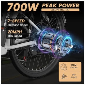 Potência máxima de 700 W e capacidade para subidas: Alimentada por um motor traseiro de 36 V e 350 W com potência máxima de 700 W, esta bicicleta elétrica supera facilmente colinas e terrenos acidentados. O sistema de 7 velocidades garante trocas suaves entre estradas planas e inclinadas, proporcionando uma condução potente e confiável.