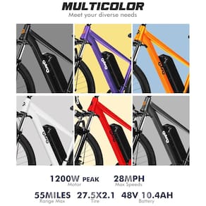 Experimente a versatilidade do nosso conjunto de marchas de 21 velocidades. Projetado para todos os tipos de terreno, nosso sistema de engrenagens profissionais atende a todas as suas necessidades de velocidade com facilidade. Esta bicicleta elétrica elegante e juvenil apresenta quatro modos de condução, incluindo um motor sem escova de pico de 1200W, atingindo velocidades de até 45 km/h, pneus 27.5X2.1. Além dos modos manual, pedal assistido e elétrico puro, um modo de assistência para caminhar foi adicionado para facilitar a navegação por vários terrenos, incluindo áreas montanhosas, para deslocamentos, viagens e passeios. Experiência Suprema de Pilotagem: A bicicleta elétrica Racer, com peso de 21,9 kg, está equipada com uma tela LCD que exibe informações importantes como velocidade, nível da bateria e nível de assistência. Nossa bicicleta também possui excelente suspensão dianteira dupla, luzes dianteiras fundamentais e Refletor Traseiro para um passeio confortável e seguro. Bateria UL2849 Certificada de 48V 10.4Ah: Facilmente removível para carregar, esta bateria possui um design à prova d'água e antifurto com chave, atendendo aos rigorosos padrões de segurança. Com tempo de carregamento rápido de cerca de 4 horas, oferece uma impressionante autonomia de até 64 km no modo acelerador ou 89 km PAS com uma única carga. Projetado para aprimorar suas aventuras diárias, garantindo que você possa explorar sem limites. Instalação Fácil: O modelo Racer da QLIFE Ebikes é quase 90% montado e vem com instruções e ferramentas. O produto tem garantia de 12 meses. Para informações adicionais, e nossa equipe de suporte ao cliente especializada irá ajudá-lo.