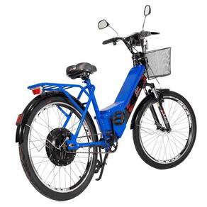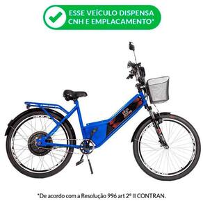Bicicleta Elétrica - Street PAM - 800w - Azul - Plug and Move: a Bicicleta Street PAM Elétrica é a alternativa para você que busca agilidade, economia e performance no cotidiano. Ela tem potente motor de 800w, capaz de atender diferentes necessidades como trabalho, transporte e até mesmo diversão com a família. A Street PAM é a bicicleta elétrica um ótimo custo-benefício para você locomover-se. Você também pode desligar o motor e utilizar como um bicicleta comum, apenas pedalando. Detalhes: - Consumo de eletricidade é de apenas 2 centavos por km rodado- Você pode recarregar com facilidade em qualquer tomada- Proporciona segurança, economia e muita praticidade- Alta qualidade, resistência e durabilidade- Produto ecologicamente correto: não polui e não emite ruídos- Pedal assistido (quando você pedala o motor é ativado)- Painel digital com indicador de nível de bateria, velocímetro, painel de tensão de bateria e parada (P)- Buzina de alerta- Sistema de segurança inteligente com alarme- Farol diurno e farol de LED noturno com foco - Chaves liga-desliga e de alarme- Pode ser carregada em uma tomada comum- Com manete de freio- Botão de velocidade e botão de buzina- Compartimento de bateria e de modulo seguros- Bagageiro- Sinaleira a pilha- Paralamas dianteiro e traseiro- Refletor - Motor de 800w- Sensor de pedal assistido- Tripé lateral - Freio v-brake- Espelhinhos retrovisores- CestaInformações:- Produto: Bicicleta Street PAM- Marca: Plug and Move- Coleção: Street PAM- Tipo: Bicicleta Elétrica- Categoria: E-bikes e MUV- Dimensões aprox. (C x A x L): 188 cm x 115 cm x 60 cm - Painel de Exibição: com indicador de nível de energia, velocímetro, painel de tensão de bateria e parada (P)- Segurança: Alarme sonoro com trava da roda traseira (Sistema antifurto inteligente)- Rodas / Pneus: Aro 26 - Alumínio Duplo- Altura Indicada (Min-Max): 1.50m a 2.10m- Autonomia Média: de 25 a 35 km por carga (A autonomia depende do peso do condutor, tipo de bateria, inclinação do terreno, auxílio dos pedais, velocidade média, calibragem dos pneus, etc)- 03 níveis de velocidade: Eco / Normal / Power - Velocidade máxima: limitada a 32km/h (De acordo com a Resolução 996 art 2 II Contran)- Peso máximo suportado: capacidade de carga é até 120Kg (para as especificações foi considerado a carga de 90Kg, caso o condutor/passageiro somados ultrapasse esse peso só alterará na autonomia descrita)- Farol: com LED- Pedais: Pedal assistido (pedal system)- Conteúdo:- 01 Bicicleta Elétrica- 02 Chaves de ignição- 02 Controles do alarme - 01 Carregador de bateria inteligente Bivolt 110/220 - 04 Baterias 12v 15ah (já instaladas) - Tempo de carregamento: entre 06 a 08 horas (nunca deixe carregando mais que 08 horas)- Recomendação: acima de 18 anos de idadeEspecificações:- Fabricante: Duos Bikes- Referência: STRAZ- Código de Barras: 7906234243530 - Embalagem (C x A x L): 180 x 88 x 32 cm- Embalagem (Peso): 50 kg- Motor: 800w de potência - Bateria: selada 48V/15ah (04 baterias de 12v 15ah)- Freio: V-Brake - Material / Composição:- Manete em Alumínio - Aro 26: Alumínio- Guidão: Aço Reforçado - Pedal: Plataforma em alumínio tipo sueco- Quadro: Aço RígidoObservações:- A bicicleta é enviada pré-montada: a bicicleta segue revisada, mas por motivo de acomodação na embalagem para transporte ela não vai completamente montada.- A instalação e revisão final é de responsabilidade do cliente. Sugerindo que seja efetuada por uma oficina especializada- O tempo de carregamento é entre 06 a 08 horas (nunca deixe carregando mais do que 08 horas)- As baterias devem ser carregadas a cada 15 dias mesmo que não sejam utilizadasAviso:- As imagens são meramente ilustrativas- Os pesos, tamanhos, pesos e medidas são aproximados- As cores e estampas dos produtos podem ter variações- As informações são de responsabilidade do fabricante ou fornecedor