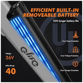 Bateria removível integrada: A bateria integrada desta e-bike possui certificação UL2849 antirroubo, enquanto as proteções contra superaquecimento, sobretensão e sobrecarga garantem um desempenho confiável e longa duração da bateria (alcance de 64 km | 36 V). A duração da bateria é significativamente estendida em 20% em comparação com baterias comuns.