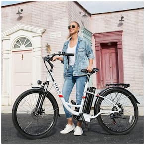 ?MATERIAL DE QUALIDADE PREMIUM?A bicicleta elétrica de 26" é feita de um quadro leve e resistente de aço carbono. As rodas dianteiras e traseiras são de liga de alumínio de dupla camada, proporcionando maior durabilidade e um passeio mais rápido com menos arrasto. O quadro baixo desta bicicleta cruiser facilita a subida e descida. O guidão largo e curvado para trás ajuda você a pedalar em uma posição natural e confortável, mesmo em percursos longos. Ideal para passeios casuais e confortáveis.