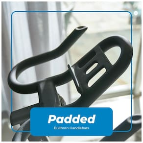 CARACTERÍSTICAS E DESEMPENHO 32 níveis de resistência silenciosa e precisa permitem que você varie a intensidade do treino Suportes totalmente ajustáveis nos pedais para um ajuste Assento acolchoado extra grande oferece uma pilotagem confortável Estrutura em pó para resistência a arranhões Guidão acolchoado são anti derrapante.