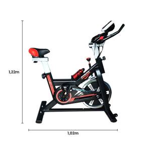 Especificações: - Roda de Ferro - Porta Squeeze - Pés com rodinha - Assento Ergonômico - Pintura eletroestática - Cor: preto e vermelho - Painel com Digitalização, Velocidade, Distância, Tempo, Calorias