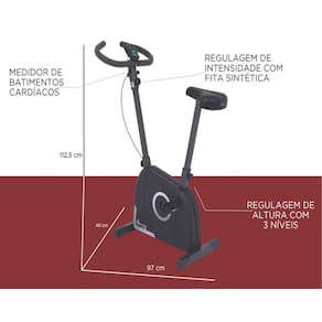 Especificações: - Tipo de bicicleta ergométrica: Vertical - Tipo de resistência: Mecânico - Peso máximo suportado: 100 kg - Com guidom ajustável: Sim - Com assento ajustável: Sim - Com computador: Sim - Funções do computador: Calorias, Distância, Pulso, Scan, Tempo, Velocidade - Sistema de transmissão: Correia