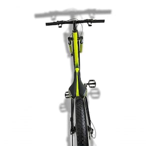Quadro de Alumínio com Suspensão Dianteira: O quadro de tamanho 17" em alumínio com cabeamento interno combina leveza e durabilidade, enquanto o garfo com 100mm de suspensão absorve os impactos, proporcionando mais conforto.