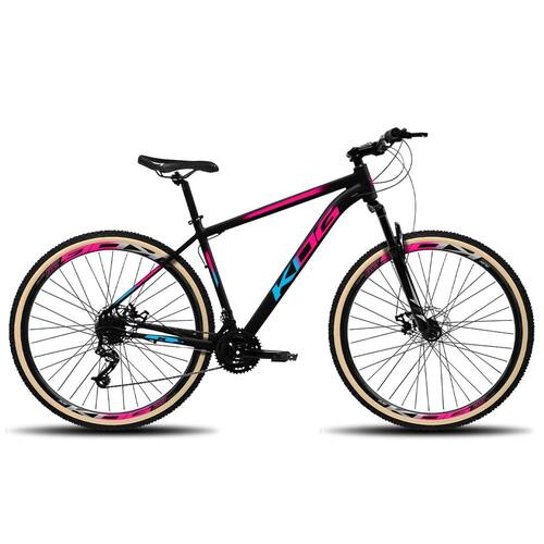 Bicicleta Feminina 29 KOG 24V Freio Disco Cambio Indexado - Cor:Preto+Rosa+Azul;Tamanho:17