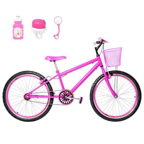 Bicicleta Feminina Aro 24 Aero + Kit Passeio Cor Pink