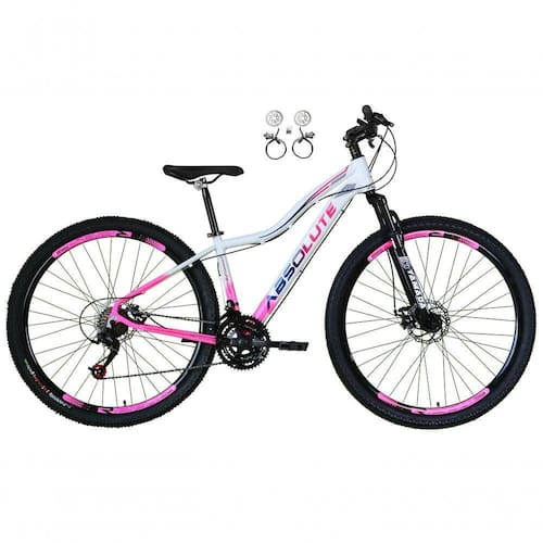 Bike Feminina aro 29 em alumínio, nova na caixa a pronta , produto com ótima qualidade e acabamento, possui 21 marchas com sistema de alavancas rapid fire que a cada clique uma marcha é trocada, garfo com suspensão, sistema de freio a disco hidráulico(óleo). Quadro com tubo rebaixado para facilitar subir e descer da bike. Bicicleta pré montada, vai precisar apenas fixar a roda dianteira, guidão, selim e pedais. Segue abaixo características da bike: