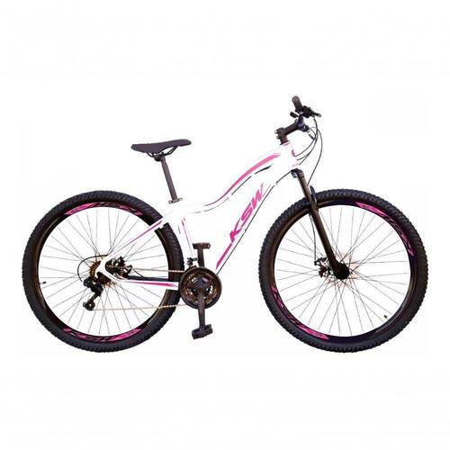 Bicicleta Feminina Aro 29 Ksw Mwza Alumínio 27v K7 Freio Disco Mecânico Garfo Suspensão - Branco/pink/violeta Tam.17