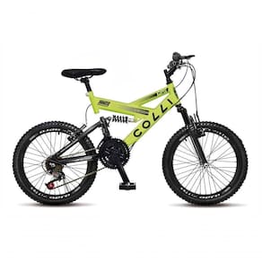 Bicicleta Gps Aro 20 Dupla Suspensão 21 Marchas Colli Amarelo CARACTERÍSTICAS GERAIS -- Marca: Colli Linha: Aro 20 Modelo: GPS Idade recomendada: Crianças Gênero: Sem gênero infantil Cor: Laranja-néon FREIOS -- Tipo de freio dianteiro: V-brakes
