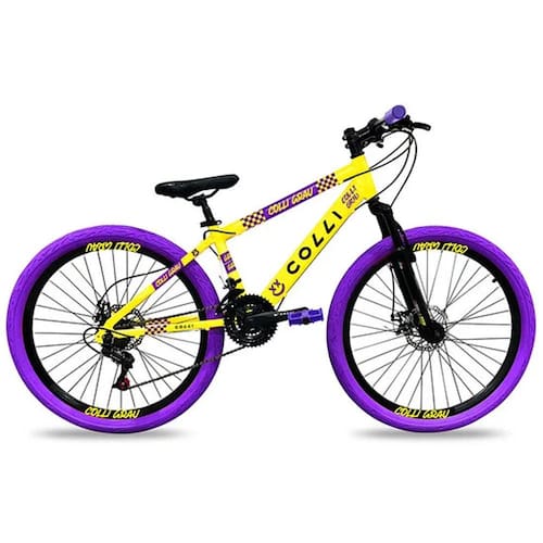 A Bicicleta Colli Grau, Aro 26, Freio a Disco, Quadro 13,5 Polegadas, Amarelo traz mais diversão para os jovens. O produto possui aro 26 e o quadro tem 13,5 polegadas e é fabricado em aço carbono, possuindo muita resistência e durabilidade para andar. Seu freio a disco permite que a pessoa pedale com mais segurança e tranquilidade. Além disso, o seu câmbio com 21 velocidades facilita a pedalada nas subidas e nas descidas. A bicicleta ainda conta com pedais Free Sport, selim com carrinho e manoplas MTB. Deixe as brincadeiras dos seus filhos mais divertida com a Bicicleta Grau da Colli. Não perca essa oportunidade e garanta já a sua!