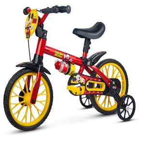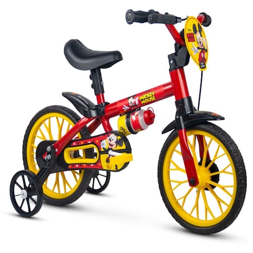 Bicicleta Mickey Aro 12 As bicicletas aro 12” Nathor são equipadas com os melhores itens de segurança e conforto para crianças. Com o limitador de giro, a criança garante mais equilíbrio e segurança ao pedalar. A regulagem de ângulo do guidão e da altura do selim permitem que a postura do ciclista se mantenha correta, além de possibilitar que a bicicleta seja usada por mais tempo – acompanhando o crescimento. O movimento central avançado facilita o pedalar, estimulando o aprendizado. A aro 12” Nathor também tem uma relação de transmissão que foi desenvolvida para que a velocidade que a criança atinge pedalando seja a mesma de um adulto andando; ou seja: os pais conseguem acompanhar a brincadeira com tranquilidade, garantindo ainda mais segurança durante a diversão! Indicada para crianças a partir de 3 anos ou com altura entre 90cm e 1m. Resistência e segurança para começar a pedalar! Características: - Quadro, garfo e guidão em aço carbono - Limitador de giro do guidão - Pneus em E.V.A - Plaquinha - Mesa de direção em nylon reforçado - Selim com regulagem de altura - Freio dianteiro a tambor - Trava de segurança Informações Técnicas: - Tamanho da roda: 12? - Altura máxima recomendada: 90 cm a 100 cm - Peso máximo recomendado: 21 kg - Peso do produto: 3,980 Kg - Peso com a embalagem: 4,720 Kg - Cubagem: 0,04 m³ - Dimensões do produto (CxAxL): 82cm x 55cm x 50cm - Dimensões da embalagem (CxAxL): 69cm x 31cm x 18cm Atenção: os produtos podem conter pequena variação no modelo do pneu Registro INMETRO - CE-BIC/INNAC 00407-01A NBR NM 301/2004