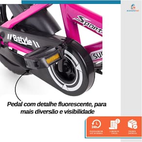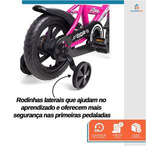 Especificações Técnicas: Aro: 12 polegadas Quadro: Triangular, garantindo maior estabilidade e segurança Pedal: Com detalhe fluorescente, para mais diversão e visibilidade Banco: Acolchoado, proporcionando conforto durante o passeio Para-lamas: Maiores, oferecendo maior proteção contra respingos Rodinhas laterais: Auxiliam no aprendizado e proporcionam mais segurança para as primeiras pedaladas Cesto: Ideal para carregar brinquedos e acessórios Freio traseiro: Proporciona controle adicional e segurança nas paradas