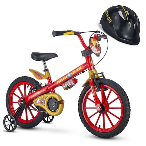 Bicicleta Infantil Aro 16 Homem de Ferro Marvel com Capacete Preto Nathor