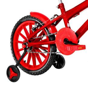 Conta com itens de segurança certificados pelo Inmetro, banco (selim) confortável, para-lamas para proteger contra respingos, cestinha, protetor de coroa e rodinhas laterais para auxiliar na fase de aprendizagem.