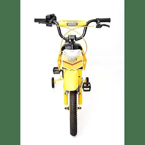 Bicicleta infantil aro 16 unitoys freio v-brake sem marchas com rodinhas unitoys moto cross Cor: amarelo A bike moto da unitoys é perfeita para as maiores e melhores aventuras da criança, super bicicleta aro 16 polegadas, com design super despojado de motocicleta, com banco estendido, tanque de gasolina fictício e freio a disco frontal. Além de super sofisticada a bike moto também é extremamente segura com proteção de corrente, guidão almofadado, e rodinhas laterais que garantem mais segurança, desempenho e estabilidade para criança.