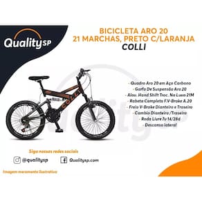 Bicicleta Infantil Aro 20 Colli GPS Bike Preta Dupla Suspensão 21 Marcahas