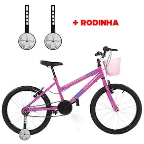 Bicicleta Infantil Aro 20 Feminina Com Rodinha Lateral e Cesta Freios V-Brake Wendy Para Meninas Pink