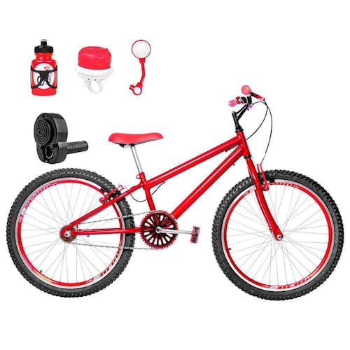 Com itens de segurança certificados pelo Inmetro, banco (selim) confortável, freios v-brake de alta frenagem, além do aro aero que proporciona dupla resistência às rodas.
