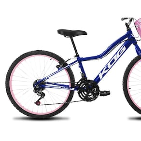 Uma bicicleta infantil da marca KOG não é apenas divertida, mas também oferece muitos benefícios para a saúde e desenvolvimento das crianças. Além de incentivar a prática do ciclismo desde cedo, a bicicleta ajuda a desenvolver a coordenação motora e equilíbrio das crianças. Pedalar regularmente também ajuda a melhorar a saúde cardiovascular, aumentar a resistência física e fortalecer os músculos. Com uma bicicleta infantil KOG, as crianças podem se divertir ao mesmo tempo em que se mantém ativas e saudáveis. CARACTERÍSTICAS Modelo: Rebaixada;\nQuadro fabricado em Alumínio; Garfo fabricado em aço carbono; Aros fabricados em alumínio; Adesivos em alto brilho; 18 Marchas; Câmbio dianteiro: Verificar Disponibilidade; Câmbio traseiro: Verificar Disponibilidade; Tipo de trocador de marchas: Luvinha; Freios V-Brake; Raios: Aço 2.0x185mm; Manopla em borracha; Garfo: Standard rígido; Movimento central: 4,5 cm; Caixa de direção: Standard; Canote do selim: Aço carbono; Pedivela: Monobloco 165mm; Pneus: 24x1,75 a 1.95; Coroa dianteira: Tripla 28x38x48 dentes, aço carbono, IMPORTARDO; Peso suportado: Até 85 kg;\n Medidas Aproximadas: \nAltura do chão ao guidão: 95 cm; Largura do guidão: 60 cm; Comprimento total: 160 cm; Comprimento entre rodas: 40 cm; Altura do chão ao banco (altura mínima): 60 cm.\n KOG A KOG é uma marca da Dias Bike, que acumula mais de 30 anos de experiência no mercado de ciclismo e motocicletas. Com um ótimo custo-benefício, a KOG desenvolve bicicletas ideais tanto para pedais urbanos quanto para trilhas. Conforto e desempenho são conciliados especialmente para iniciantes no Mountain Bike. A Dias Bike faz parte da família Dias Bike e Dias Moto Peças, com mais de 10 lojas físicas e uma distribuidora atacadista, comercializando bicicletas, peças e acessórios para todo o Brasil com garantia de entrega e satisfação do cliente. Marca: KOG