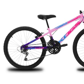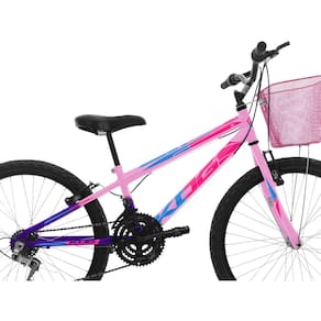 Bicicleta Infantil Aro 24 KOG Feminina 18 Marcha 3x8 Velocidades com Cestinha para Meninas Violeta Degrade Rosa