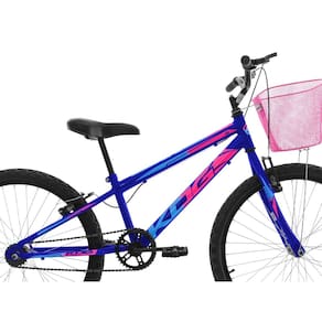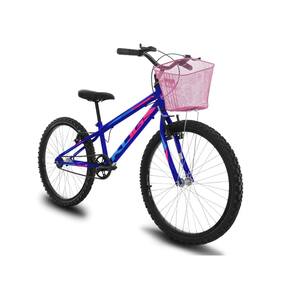 Bicicleta Infantil Aro 24 KOG Feminina com Cestinha Cor Azul Signos Rosa