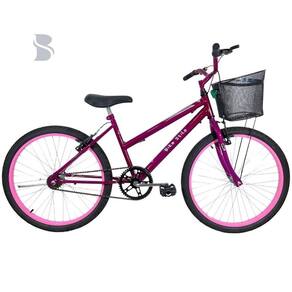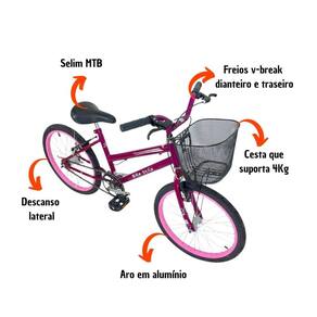 Bicicleta Infantil Aro 24 Mtb Cesta Feminina Rosa Verniz