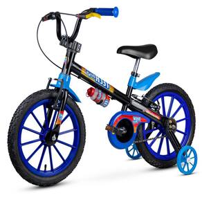 A bicicleta aro 16 Nathor possui modelos com aro em ABS e em alumínio. O limitador de giro evita que o guidão vire completamente, proporcionando mais segurança e preservando o freio. Para facilitar o aprendizado e a identificação do freio traseiro, a maçaneta amarela ganha destaque e indica o acionamento ideal na hora da frenagem. As rodinhas laterais permitem o desenvolvimento da criança na fase de aprendizado, estimulando o equilíbrio e a autonomia. A aro 16 tem pneus com câmara, quadro em aço carbono e garrafinha. Indicada para crianças a partir de 5 anos ou com altura entre 1,10 m e 1,20 m.