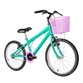 Bicicleta Infantil Feminina Aro 20 Alumínio Natural + Kit Passeio Cor Verde água