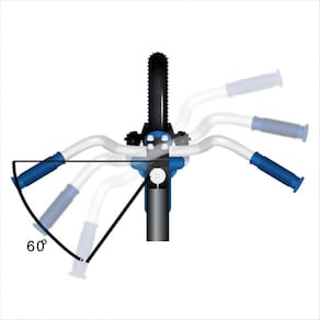 O limitador de giro evita que o guidão vire completamente, proporcionando mais segurança e preservando o freio. Para facilitar o aprendizado e a identificação do freio traseiro, a maçaneta amarela ganha destaque e indica o acionamento ideal na hora da frenagem.
