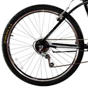 Características: - Quadro, Garfo, Guidão e Canote do Selim em Aço Carbono - Engrenagem Tripla em Aço - Freio V-Brake em Alumínio - Maçaneta de Freio em Alumínio - Manopla Plástica - Movimento Central e de Direção com Esferas - Pedal Plástico - Pedivela Monobloco - Pneus e Câmaras de Ar tamanho 26 - Aros Aero em Alumínio - Cubo de Aço - Raios Fino Zincado - Câmbio Dianteiro e Traseiro Importado - Relação de 18V - Selim Personalizado em RVS - Idade Recomendada Adulto - Cores Disponíveis: Azul Hunther, Grafite e Vermelha