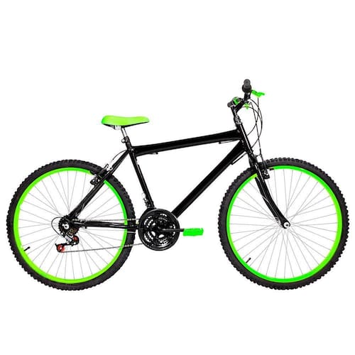 Bicicleta Masculina Aro 26 Mtb Alumínio Colorido 18 Marchas Cor Preta E Verde