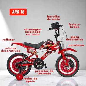 Bicicleta moto cross aro 16 - vermelha Bicicleta moto cross aro 16 - vermelha Você já considerou a importância de as crianças se divertirem de maneira segura enquanto aprendem a andar de bicicleta Sem uma bicicleta adequada, elas podem perder a chance de explorar o mundo ao seu redor, sentindo-se inseguras e limitadas. A bicicleta moto cross é a opção ideal para proporcionar diversão e segurança a crianças de 3 a 7 anos com um design inspirado em motocicletas de cross, ela une estilo e resistência, tornando cada passeio emocionante. Sua estrutura robusta e as rodinhas laterais oferecem a confiança necessária para que os pequenos se aventurem e desenvolvam suas habilidades de equilíbrio e coordenação motora. Benefícios - estimula o equilíbrio e a coordenação motora - design esportivo e atraente - suporta até 50 kg, perfeito para crianças em crescimento - envio pré-montado para fácil montagem em casa Especificações técnicas - dimensões aproximadas: altura: 90cm, comprimento: 119cm, comprimento do guidão: 53cm - cor: vermelha - tamanho do aro: 16 - idade recomendada: de 3 a 7 anos - peso máximo suportado: até 50 kg - normas de segurança: nm 301/2022 - acompanha: pedais, parafusos, rodinhas laterais, sinalizador - peso aproximado: 11kg Conteúdo da embalagem - 01 bicicleta moto cross aro 16 - vermelha Não perca a oportunidade de proporcionar ao seu filho aventuras incríveis adquira já a bicicleta moto cross e crie momentos inesquecíveis de diversão e aprendizado Informações importantes sobre a compra - com de fábrica Dúvidas frequentes: 2 - em quanto tempo meu pedido será enviado 3 - é seguro fazer esta compra Resposta: desde a fundação da nossa empresa, temos milhares de clientes satisfeitos em outras lojas online. Somos uma loja oficial neste marketplace, oferecendo todas as garantias da plataforma e de fábrica. 4 - os produtos têm Resposta: sim, oferecemos de 30 dias em todos os nossos produtos. Se houver qualquer problema, resolveremos da melhor forma possível. 5 - esta compra é segura Resposta: sim, garantimos total segurança na sua compra e sigilo dos seus dados. 6 - e se eu não gostar do produto, terei meu dinheiro de volta Resposta: de acordo com o cdc código de defesa do consumidor , todo cliente de compras online tem até 7 dias para devolver o produto em caso de arrependimento, sem custo na devolução. Você será reembolsado em 100% do valor da compra. Se você tiver alguma dúvida, envie-nos uma mensagem e responderemos o mais rápido possível. Marca: Não Informado