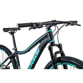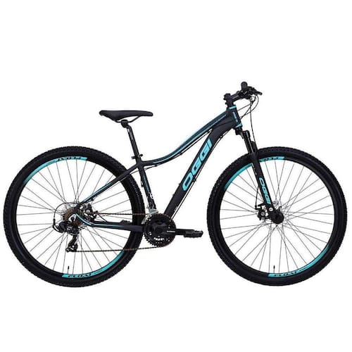 Quadro em alumínio Float Sport com geometria feminina; Suspensão Oggi modelo Zoom com 80mm de curso; Trocadores Shimano ST-EF500 21 velocidades; Guidão MTB Reto alumínio; Mesa Aheadset alumínio; Manopla Velo; Pedivela Shimano Modelo FC-TY301 42-34-24 dentes, 170mm; Corrente KMC 7 velocidades; Freio a Disco Mecânico, rotores de 160mm; Aro Aero Com Parede Dupla; Pneu MTB 29x2.10; Selim MTB; Canote em alumínio; Câmbio Dianteiro Shimano FD-TZ300 3 velocidades; Câmbio Traseiro Shimano RD-TY500 7 velocidades; Roda Livre MF-TZ31/500 14-28 dentes.