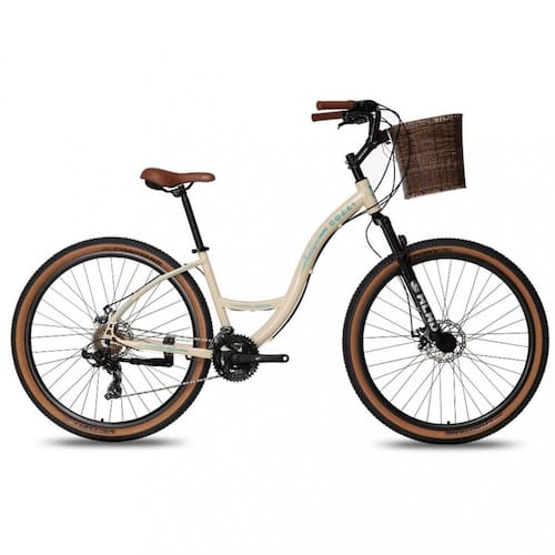 Caracteristicas: 21 Velocidades Alavanca Stef500 Shimano Roda aro 29 aero 36 furos com blocagem Cambio dianteiro puxa por cima 3V TZ500 Shimano Cambio traseiro sem gancheira 7V TY300 Shimano Canote do selim 26.8 Corrente fina 1/2x3/32 Index Descanso lateral regulavel Suspensao Garfo Aro 29 Susp Over Ahead Set 28.6 Guidao Colli Beach Confort Freio - kit freio a disco pinca/disco Movimento Central Blindado 122.5 Caixa de Direcao - Integrado 1.1/8 44/44mm Pedal Free Sport 9/16 Pedivela Triplo aco -24/34/42- Pneu 29x2.20 Tamanho quadro17 Selim Molise Selle Royal Idade recomendada: a partir de 14 anos Peso suportado: 120 kg