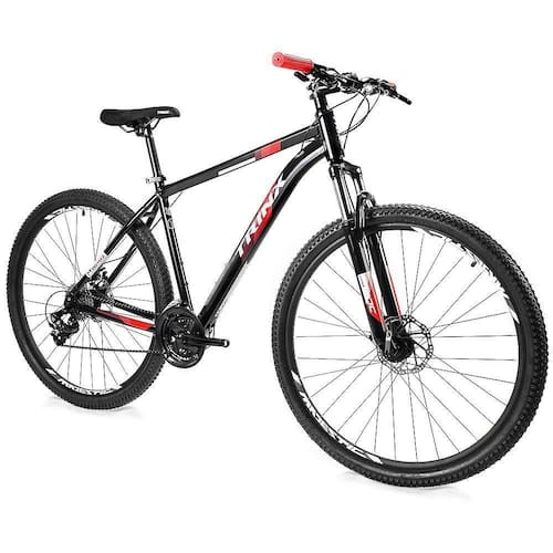 Bicicleta Quadro 19 Aro 29 Marcha e Suspensão Preto/Vermelho Bike Trinx M100 MAX 19 Aro 29 Preto com Vermelho com Marcha ============================================================ A bicicleta é um dos primeiros meios de transporte escolhido por muitos, e ter a bicicleta ideal e segura é essencial para que você possa se aventurar. Totalmente desenvolvida em um material resistente que garante toda a segurança que você precisa, além de tornar ainda mais divertido. A bicicleta causa um impacto positivo no meio ambiente e bem-estar das pessoas de todas as idades. Além de ser Utilizado para fins recreativos como atividades ao ar livre, passeios com família e amigos, você também pode usa-la em seu dia a dia, indo ao trabalho, escola e etc. Produzida para proporcionar o melhor desempenho graças a sua suspensão Trinx 100mm, proporcionará mais estabilidade na hora de se aventurar em trilhas e terrenos irregulares. Com quadro feito de material de alta qualidade e tecnologia avançada, a bike garante segurança, durabilidade e conforto. ============================================================ Contém: 01 Unidade Especificações: - Aro: 29 - Quadro: 19 - Suporta até 120 Kilos - Altura do Ciclista: de 1,78 até 1,85 Metros - Cor: Preto com Vermelho - Peso: 20 Kilos - Comprimento do Guidão : 70cm - Medida 50cm do banco ao pedal Descrição Técnica: - Quadro: Trinx Alumínio 6061 T6 19 - Cabeamento Interno - Suspensão: Trinx Aço 100mm - Trocador: Shimano Rapid Fire - Câmbio Traseiro: Shimano Tourney Ty500 8v - Câmbio Dianteiro: Shimano Tourney Ty500 3v - Pedivela: ProWheel - 24/31/42T Coroa Tripla - Freio: Trinx- Alumínio - Mesa: Trinx Alumínio - Guidão: Trinx Aço - Corrente: Tec PWR / 8V - Aro: Trinx Parede Dupla Alumínio 29 - Pneu : Chaoyang 29 x 2.1 - Cubo: Trinx Aço - Cassete: Roda Livre 8v - Blocagem: Trinx Alumínio - Selim: Trinx Sport - Canote: Trinx Aço RECOMENDAÇÕES: - Sugerimos que a montagem seja feita por uma oficina especializada - Feita para passeios e trilhas leves - Não recomendada par manobras radicais ou trilhas pesadas ============================================================ Devido à diferença entre monitores e iluminação diferentes, pode haver variação na tonalidade apresentada no anúncio. Medidas muito aproximadas. Marca: Não Informado