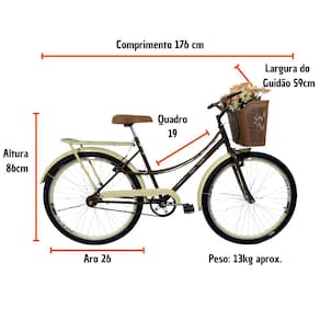 Bicicleta Vintage aro 26'' um modelo clássico, com design retrô. Elegância nos passeios, design único e diferenciado, agrega muito mais sofisticação e originalidade, estilosa ideal para passear em parques, praias e áreas urbanas.