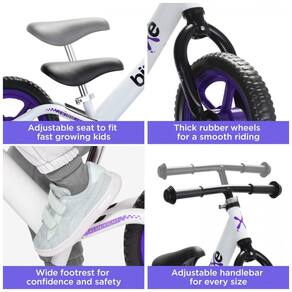 Bicicleta sem Pedal de Alumínio Leve para Crianças de 2 a 5 Anos, Bixe, Roxa