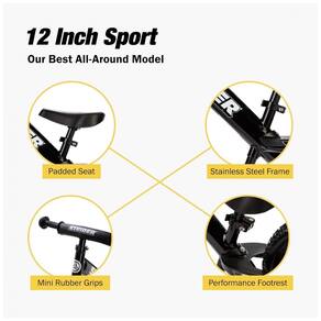 Aprenda a andar mais rápido As bicicletas de equilíbrio são comprovadas repetidamente para ensinar meninos e meninas a andar mais rápido do que as rodinhas. Seu filho aprenderá equilíbrio e direção, o que torna a transição para uma bicicleta muito mais fácil. Elevação mais baixa do assento a altura do assento de 27 centimetros permite que seu filho monte facilmente na bicicleta desde tenra idade. As alturas do assento e do guidão são ajustadas para acomodar idades de 18 meses a 5 anos. Nenhuma ferramenta necessária. Estrutura leve A estrutura de aço pesa pouco mais de 2,5 kg, permitindo que seu filho dirija, empurre e manobre facilmente a bicicleta enquanto aprende a pedalar. Mini Grips com Almofada de Segurança As alças de borracha do guidão e uma almofada de segurança protegem seu filho caso ele caia para frente. Nenhuma bicicleta balanceada oferece mais recursos de segurança do que uma Strider. Junte se à família Strider Conheça a bicicleta que incendiou o mundo e revolucionou a maneira como as crianças aprendem a pedalar. Crianças de um ano estão experimentando a emoção de andar sem rodinhas antes de ficarem sem fraldas Marca: Não Informado