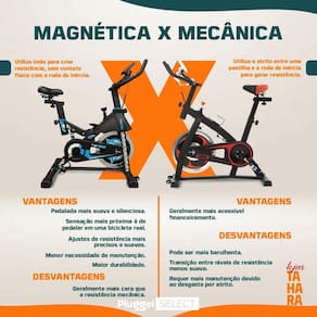 Bicicleta Ergométrica Spinning Profissional Magnética Inércia de 20Kg Suporta até 160Kg e altura de 2m - Pluggei Select by Lojas Tahara Os seus dias de preguiça acabam de chegar ao fim com essa nova Bicicleta Ergométrica Pluggei Select by Lojas Tahara Lançamento 2025 Robusta, prática e adequada para diferentes tipos de treinamento, essa bicicleta permite que você pratique o Spinning, uma das atividades mais completas para fazer em casa ou na academia. O ajuste de resistência ou da altura do banco e do guidão garantem que você se sinta confortável enquanto pratica seus exercícios favoritos, tornando o treino um momento prazeroso e gratificante Confira tudo o que você precisa saber sobre esse produto: - Tipo de Resistência: Magnética. Utiliza ímãs para criar resistência, sem contato físico com a roda de inércia. Oferece uma pedalada mais suave e silenciosa, a sensação de pedalar em uma bicicleta, permite ajustes de resistência mais precisos e suaves, e requer menos manutenção tendo uma durabilidade maior. - Inclui painel com múltiplas funções: Velocidade, Distância, Hodômetro, Calorias e Pulso/Batimentos cardíacos com alimentação via pilha AA pilha não inclusa . - Possui um suporte para celulares que permite que você assista a vídeos de exercícios ou curta músicas enquanto pedala. - A bicicleta suporta até 160kg e 2m de altura. - A roda de inércia alcança até 20kg. - A altura do guidão, altura do assento e a distância do assento são ajustáveis. - Possui suporte para garrafinhas de água - Pedal de metal com presilha que é ajustável - Acompanha Kit de instalação de parafusos e chaves Dimensões do Produto: - Comprimento de uma base a outra: 88cm - Altura Máxima do guidão: 115cm - Largura: 49cm - Altura Máxima do banco: 99cm - Distância Máxima do banco ao guidão: 83cm Obs: Para mais detalhes consultar as medidas detalhadas que constam nas imagens Incluído na embalagem: - 1 Bicicleta Spinning Ergométrica - 1 Kit de instalação e montagem, com parafusos e chaves - 1 Display Digital Com essa bicicleta, você pode finalmente realizar o sonho de ter uma vida fitness, tudo isso sem sair de casa. Não perca tempo e adquira já a sua Imagens ilustrativas. As tonalidades das cores podem variar levemente. Os produtos são medidos manualmente, podendo haver pequenas variações nas medidas. Dependendo do lote, o revestimento de plástico do produto pode vir ou não com pequenas marcações. As imagens contendo a nossa marca Pluggei Select e Lojas Tahara são apenas ilustrativas, para proteção de direitos autorais. Marca: Não Informado