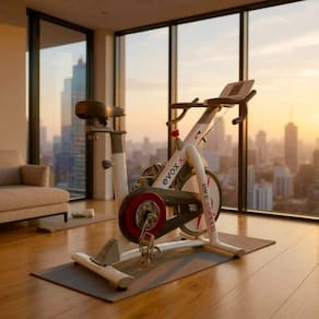 • Uso residencial, clínicas, estúdios, condomínios e academias comerciais. • Disco de inércia (Flywheel): 15 kg. • Tração / transmissão por correia (funcionamento mais silencioso, pedalada suave, sistema mais limpo e de menor necessidade de manutenção do que transmissão por corrente) • Nível de ruído: silenciosa. • Sistema ajustável de freio magnético. • Níveis de tensão: Variedade Infinita. • Pintura especial Gloss Paint de maior brilho, cobrindo a roda dianteira. • Rotação para frente e atrás. • Voltagem: não liga em tomadas. • Monitor: (conecta o seu Smart Phone ou Tablet viaBluetooth com o APP Kinomap)