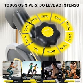 Sistema de resistência mecânico: O ajuste é feito manualmente por meio de botões + e , o que permite adaptar a intensidade do treino conforme o seu objetivo.