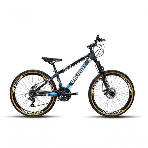Bicicleta Vikingx Tuff 25/30 Aro 26 Vmaxx Freio A Disco Cambios Shimanos 21v Preto Azul QUADRO: VIKINGX Aluminio soldas reforçadas SUSPENSÃO: Importadas DE MARCHAS: 21 velocidades ALAVANCA DE CÂMBIO: Rapid Fire 7 velocidades Index CÂMBIO DIANTEIRO: Shimano Tourney 3 velocidades Index CÂMBIO TRASEIRO: Shimano Tourney 7 velocidades Index CORRENTE: Comum 7 velocidades Index PEDIVELA: Triplo Aço Index RODA LIVRE : Comum 7 velocidades Index MOV. CENTRAL: Rolamentado CAIXA DE DIREÇÃO: AHEAD SET GUIDÃO: Comum SUPORTE DO GUIDÃO: Comum MANOPLA: Simples Mtb FREIO: A disco mecanico PEDAL: Simples Mtb SELIM: Simples Mtb CANOTE DO SELIM: Aço AROS: VMAXX PNEU: KENDA FLAME COM BANDA