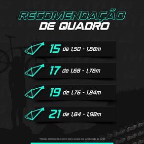 - A geometria do quadro (desenho) pode mudar conforme o tamanho escolhido alterando a inclinação do tubo superior.