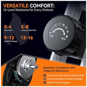 A resistência magnética de nível 16 para o melhor controle de treino, leve seu treino para o próximo nível com o sistema de resistência magnética de bicicletas 16 lados! Equipado com quatro ímãs de alto grau e um volante de alumínio de 2,99 quilos, esta bicicleta interna fornece ajustes de resistência sem costura e sussurros