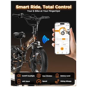 Recursos adicionais: Pneus 20 x 4, quadro dobrável, integração com aplicativo, freios hidráulicos, suspensão dupla, assento ajustável, guidão ajustável, farol, luz de freio e setas em cada bicicleta