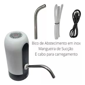 Bico bomba para galão água puxador elétrico recarregável usb Esqueça o peso de virar o galão no antigo bebedouro apresentamos uma forma diferente e simples, onde você pode levar qualquer lugar e encaixar em qualquer modelo de galão tranquilamente. A bomba para galão de água elétrica recarregável é universal, que serve galões e garrafões de 5l, 10l, 20l e similares. Especificações do produto: - bateria forte: dura até 8 galões de água de 20 litros. Carga: 3 horas. - pode ser Utilizado quando estiver carregando. - uso universal: serve todos os tamanhos de galões e garrafões, 5l, 10l, 20l e similares. - materiais seguros: aço inox 304, plásticos pp, abs, eva , silicones, alumínio, bateria de li-ion, circuito eletrônico. - voltagem: bivolt 110v- 220v. - peso leve: 400gr. - líquido: 300gr. - tamanho: 13 cm de comprimento e 5 cm de largura. Itens inclusos: -1 bomba filtro -1 manual de instrução; -1 haste em inox; -1 cabo usb; e -1 mangueira de silicone. Marca: Não Informado Ean: 0178964871780